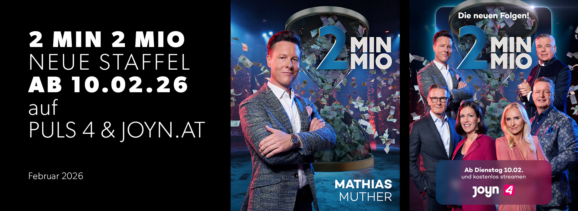 Wien, 30. Januar 2026 — Ab dem 10. Februar 2026 nimmt der gebürtige Vorarlberger Unternehmer Mathias Muther erneut auf dem Investorenstuhl der 13. Staffel der PULS-4-Start-up-Show 2 Minuten 2 Millionen Platz. Das Format bietet ambitionierten Gründerinnen und Gründern die Möglichkeit, ihre innovativen Geschäftsideen einer Jury aus erfahrenen Investoren zu präsentieren und diese mit überzeugenden Konzepten, Vision und unternehmerischem Antrieb für sich zu gewinnen.